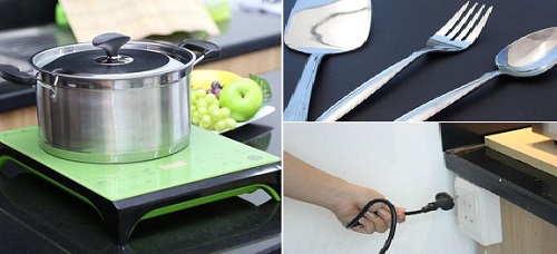 Đối với bếp điện từ, tất cả các vật bằng kim loại khi đặt trên mặt bếp đều được làm nóng, do vậy phải chú ý không để các dụng cụ, đồ vật kim loại trên mặt bếp khi đang nấu nướng.