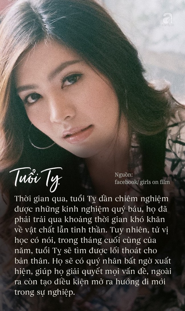 Họ sẽ có quý nhân bất ngờ xuất hiện, giúp họ giải quyết mọi vấn đề, ngoài ra còn tạo điều kiện mở ra hướng đi mới trong sự nghiệp. Dự kiến năm 2019 sẽ bùng nổ về mọi mặt, đặc biệt là tài vận lên như diều gặp gió.