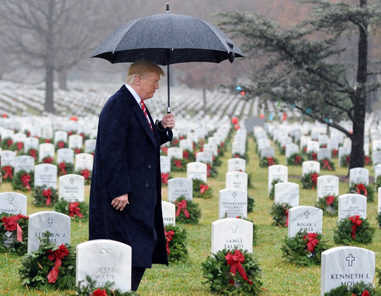 Tổng thống Donald Trump đến thăm nghĩa trang Arlington hôm 15-12. Ảnh: REUTERS