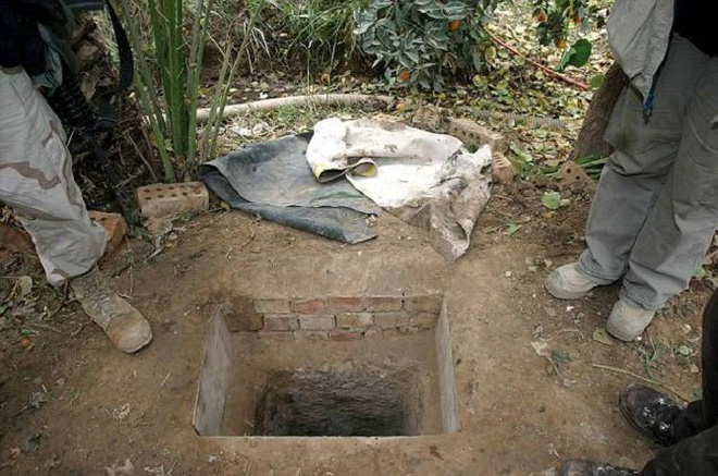 Căn hầm nằm sâu khoảng 1,8 - 2,4 mét dưới lòng đất, có một chiếc giường nhỏ, một cái quạt, một lỗ thông gió, một vali đựng 750.000 USD và 2 khẩu AK-47.