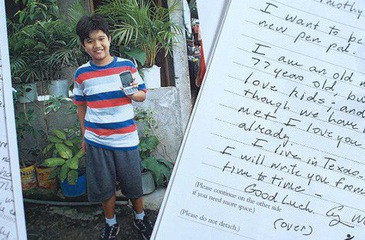 Đáp lại, cậu bé Timothy cũng gửi thư hồi âm và cảm ơn vị ân nhân của mình.