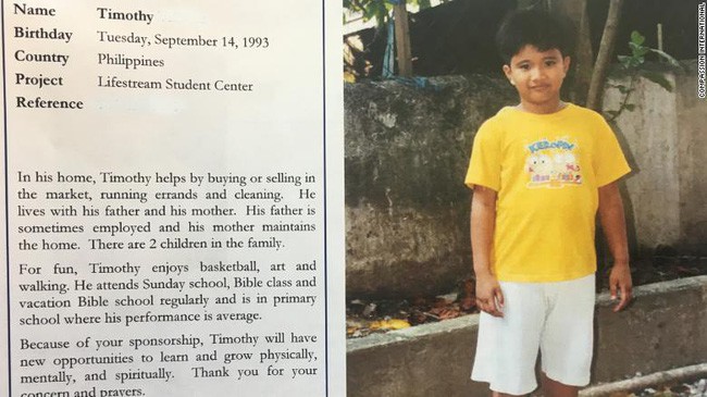 Khi Timothy 17 tuổi, hết độ tuổi được viện trợ, cô Angie đã bay sang Philippines để gặp em và tiết lộ sự thật" - Chủ tịch Wess Stafford cho biết.