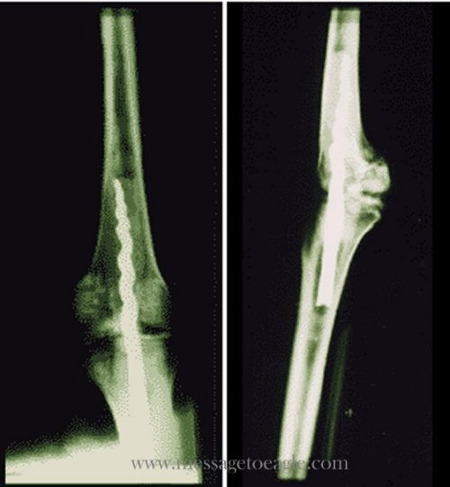 Hình ảnh X-quang cho thấy chiếc ốc vít dài trong chân của xác ướp. (Ảnh: messagetoeagle.com)