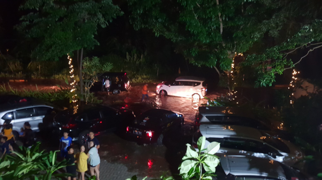 Trong khi đó, một đoạn video khác ghi lại hiện trường sau khi sóng thần tấn công cho thấy những con đường ngập nước và xe ô tô bị lật.