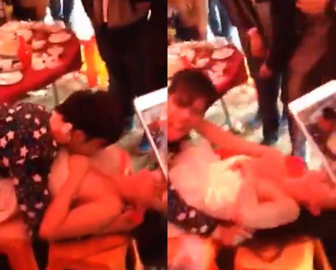 Theo đoạn video đăng tải trên Weibo vào ngày 18/12, một chàng trai mặc áo tối màu đang dùng cả cơ thể của anh ta đè phù dâu xuống băng ghế.