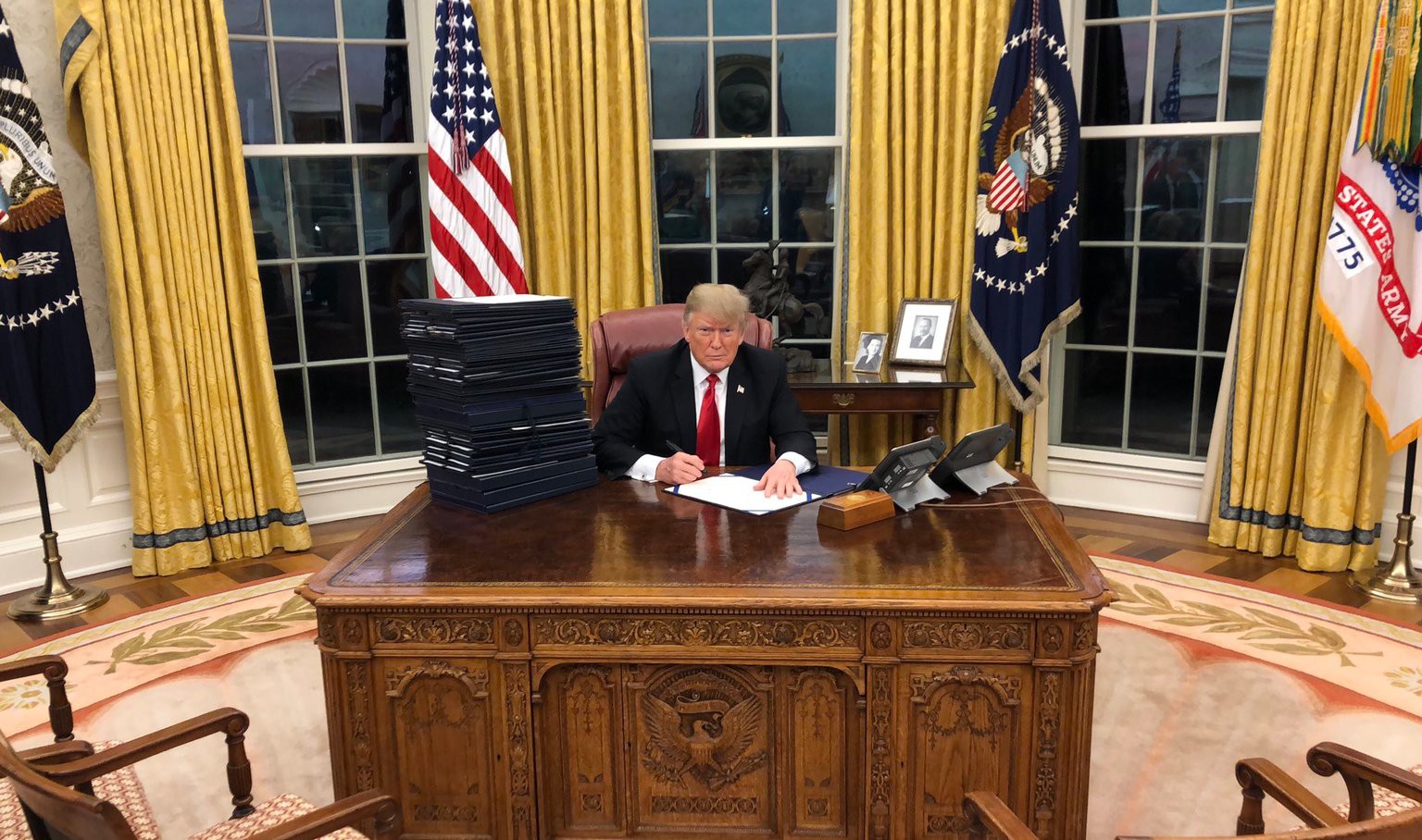 Tổng thống Trump ký dự luật trong phòng làm việc (Ảnh: Twitter)