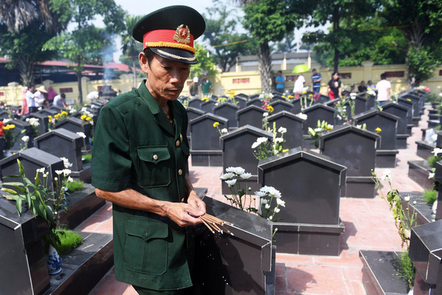 Một cựu chiến binh Việt Nam thắp hương tại một nghĩa trang ở Hà Nội nhân Ngày Thương binh Liệt sĩ (Ảnh: Hoàng Đình Nam/AFP)