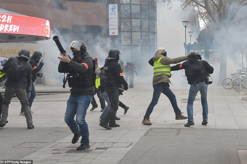 Cảnh sát đụng độ người biểu tình ở Toulouse. Ảnh: AFP