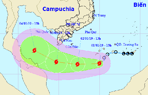 Chiều 1/1, áp thấp nhiệt đới trên vùng biển Tây Nam quần đảo Trường Sa mạnh lên và trở thành cơn bão số 1 của năm 2019 - tên quốc tế là Pabuk. Sức gió tối đa 75 km/h (cấp 8), giật tăng hai cấp, tâm bão cách đất liền các tỉnh Nam Bộ khoảng 500 km, cách Côn Đảo khoảng 450 km về phía Đông Nam.