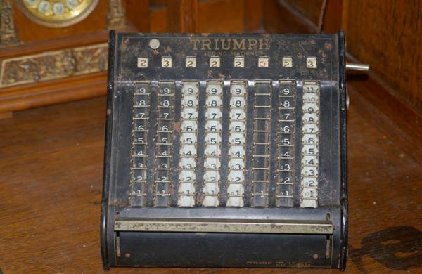 Tiền thân của những chiếc máy tính có phím bấm là những chiếc máy tính cơ học, xuất hiện từ thế kỷ 17. Đến thế kỷ 19, nhiều nhà sáng chế bắt đầu đưa ra bản thiết kế cho máy tính có nút bấm dạng số. Năm 1884, Dorr Felt phát minh ra một chiếc máy tính với 9 hàng số tương đương với 9 chữ số (1-9), cùng 8 cột số tương đương với hàng đơn vị.