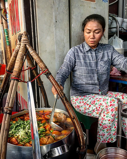 Gánh canh bún quen thuộc ở vỉa hè Sài Gòn.
