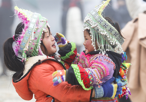 Miền Bắc đang trải qua đợt rét nhất từ đầu đông. Hai em bé ở Sa Pa (Lào Cai) phải mặc thật ấm để đi bán đồ lưu niệm. Ảnh: Tuấn Minh.