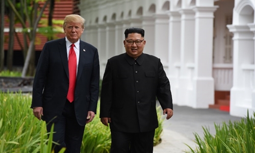 Trump (trái) và Kim Jong-un tại Singapore tháng 6 năm ngoái. Ảnh: AFP.