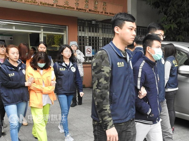Lực lượng hành pháp Đài Loan bắt giữ các du khách bỏ đoàn (Ảnh: NIA)