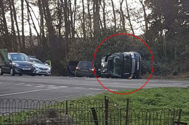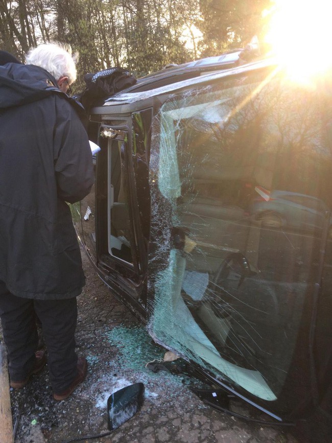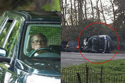 Chiếc xe của Hoàng thân Philip bị lật đổ.