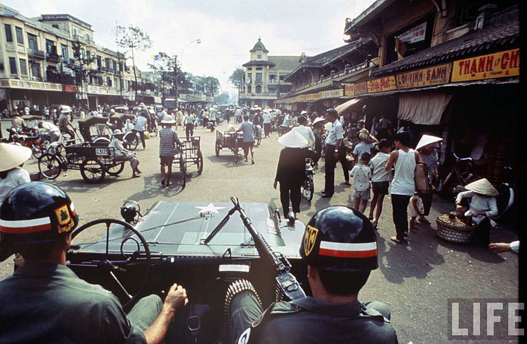 Phía trước chợ Bình Tây năm 1968, ảnh chụp từ trên một chiếc xe của quân cảnh Sài Gòn. Ảnh: Life.