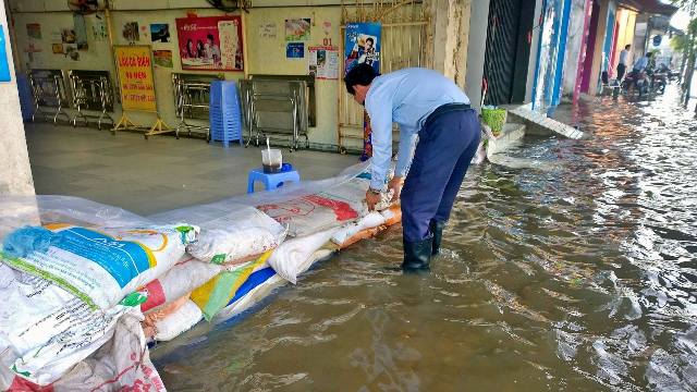 Khu vực vùng trũng trong nội thành cũng bị áp lực ngập lụt lớn đợt triều cường này.