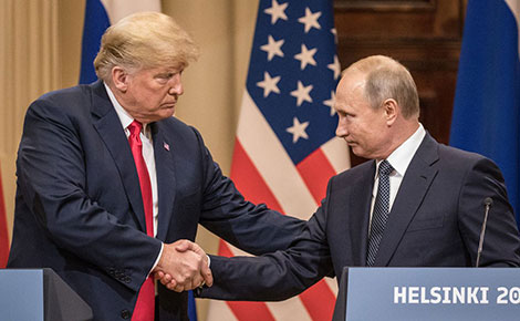 Tổng thống Donald Trump và Tổng thống Vladimir Putin trong cuộc gặp thượng đỉnh Nga - Mỹ tại Helsinki (7-2018). Ảnh: L.G.
