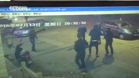 Camera an ninh trên đường phố đã ghi lại được cảnh một người đàn ông bị vài người đàn ông khác truy đuổi.