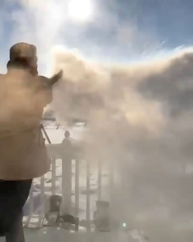Hai người đã chết ở Detroit, Michigan sau khi nhiệt độ giảm nhanh chóng vào tối ngày 29/1 (giờ địa phương). Trong khi đó, một cơn bão tuyết ở khu vực Trung Tây đã khiến 5 người khác qua đời. Trong ảnh: Nước sôi đóng băng tức khắc sau khi một người đàn ông ở Barrington, Illinois hắt ra ngoài không khí.