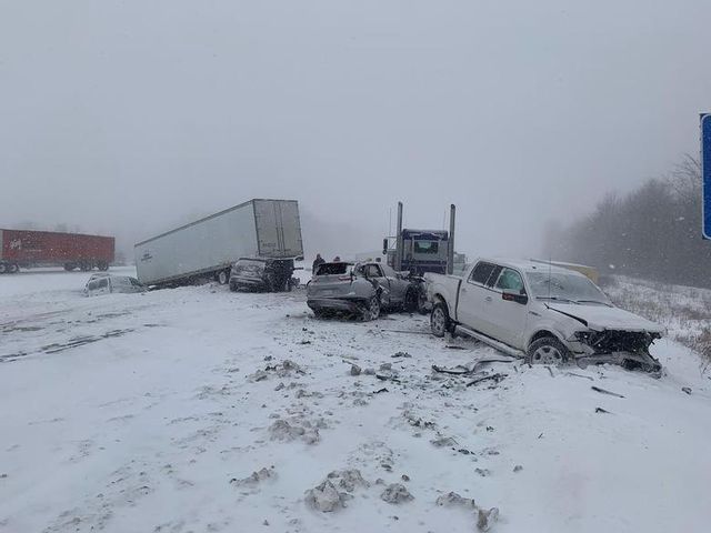 Hiện trường một vụ tai nạn do tuyết rơi dày dẫn tới trơn trượt và giảm tầm nhìn.
