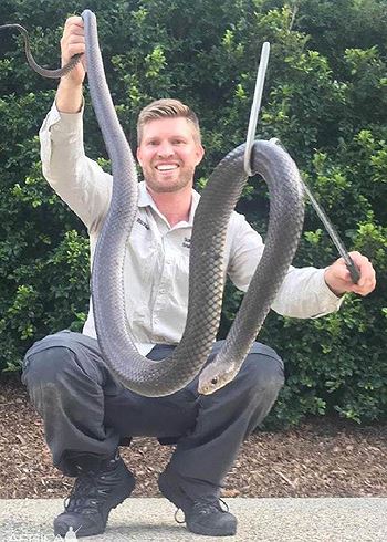 Ngay sau đó Richie Gilbert, một chuyên gia có 17 năm kinh nghiệm bắt rắn đã đến và tóm gọn con rắn này. Được biết, rắn nâu phương đông là loài rắn bản địa của Australia và được coi là độc thứ hai thế giới. "Rắn có thể phòng vệ quyết liệt nếu bạn cố bắt hay giết chúng. Chúng cũng có tính cách khác nhau. Con rắn này muốn chạy trốn nên công việc của tôi khó khăn hơn một chút, nhưng tôi không cần quần áo bảo hộ đặc biệt. Tôi đã xử lý chúng suốt 17 năm rồi", Richie Gilbert chia sẻ.