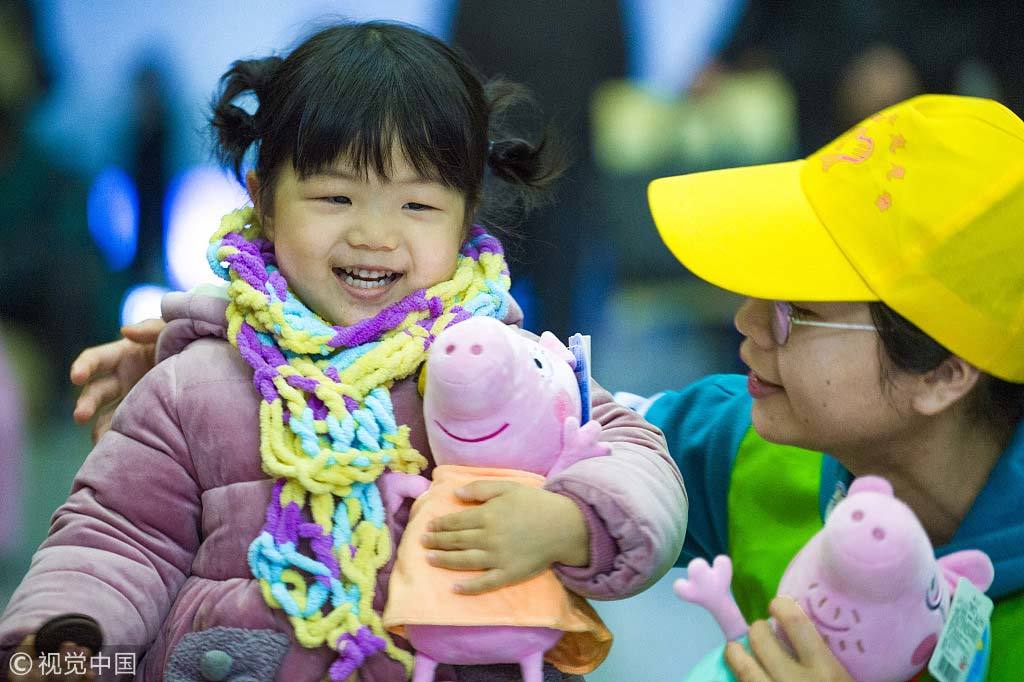 Một em bé tại Nam Xương, tỉnh Giang Tây được mua đồ chơi mới.