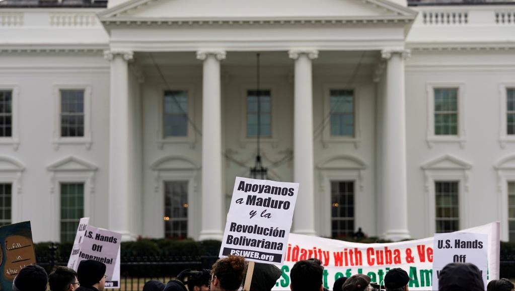 Giới hoạt động nhân quyền và chống chiến tranh biểu tình trước Nhà Trắng phản đối Mỹ can thiệp vào cuộc khủng hoảng ở Venezuela, Washington, ngày 26/01/2019. REUTERS/Joshua Roberts
