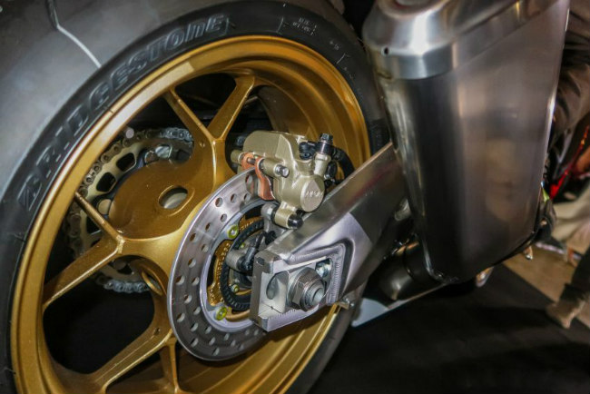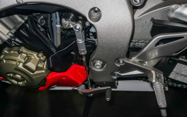 Là dòng siêu xe nhưng CBR1000RR Fireblade SP chỉ có trọng lượng 195 kg. Mẫu xe này được đánh giá là mẫu CBR nhẹ nhất với tỷ lệ công suất và trọng lượng rất lý tưởng. Ngoài ra đây còn là mẫu CBR mạnh nhất, nhanh nhất với những công nghệ tối tân. Ảnh cánh tay trục lực lưỡng của xe.