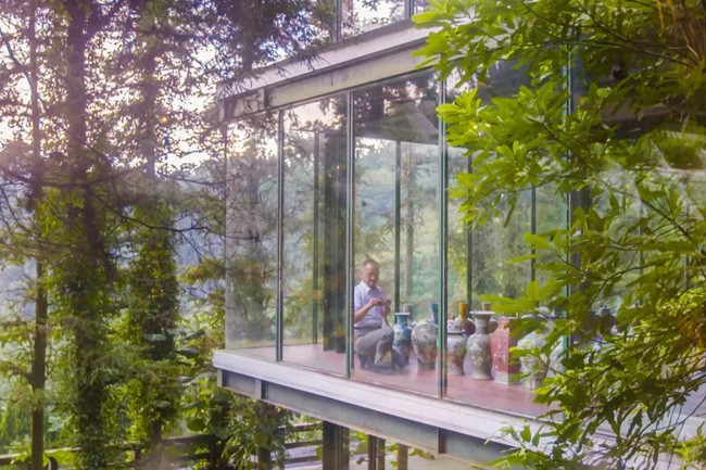 Ngôi nhà được xây tường kính bao quanh vô cùng ấn tượng.