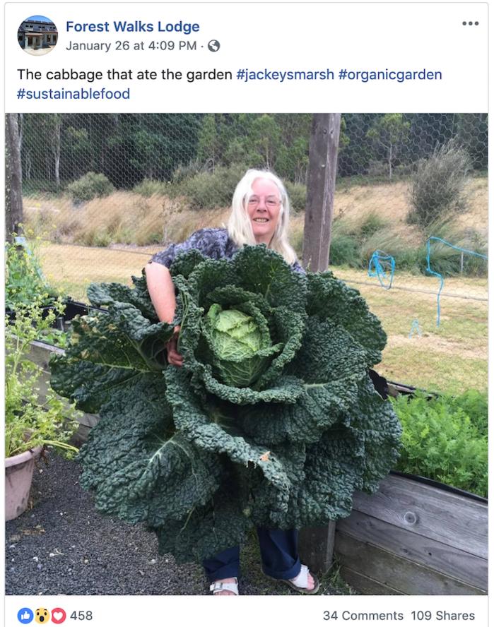 Cây bắp cải có kích thước to như người. (Ảnh: (Ảnh: Facebook/ Forest Wallks Lodge)