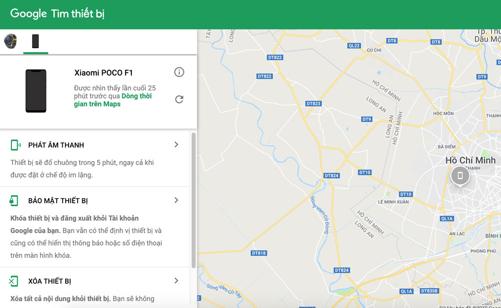 Vì điện thoại bị khóa, do đó bạn cần mở trình duyệt trên một thiết bị khác và truy cập vào trang https://www.google.com/android/find và đăng nhập tài khoản tương ứng. Nhấp vào điện thoại đang bị khóa và chọn Erase Device (xóa thiết bị).