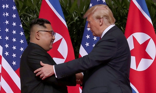 Tháng 3/2018, Triều Tiên gửi lời mời họp thượng đỉnh Trump - Kim đồng thời cam kết "không tiến hành thêm các vụ thử tên lửa hay hạt nhân". Tổng thống Mỹ nhanh chóng nhận lời và cuộc gặp lịch sử diễn ra vào tháng 6/2018 tại Singapore. Đây là lần đầu tiên một tổng thống Mỹ đương nhiệm gặp một lãnh đạo Triều Tiên.Trump và Kim Jong-un bắt tay và mỉm cười với nhau trong bầu không khí thân thiện. Kim nói với Trump thông qua phiên dịch viên rằng: "Tôi nghĩ toàn thế giới đang theo dõi khoảnh khắc này. Nhiều người trên thế giới sẽ nghĩ rằng điều này giống như một bộ phim khoa học viễn tưởng".