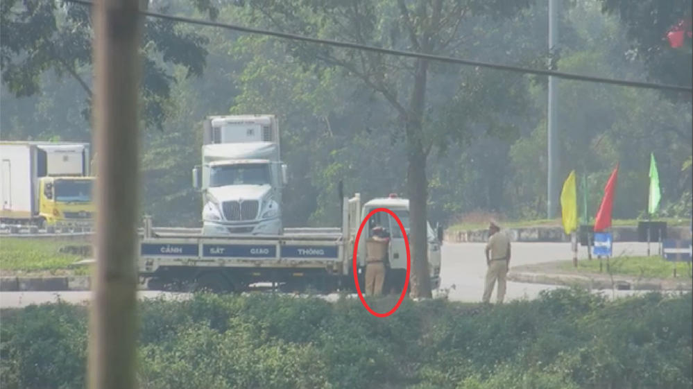 Theo nội dung clip, trưa 18/2, một tổ CSGT dừng xe khách mang BKS: 17B-019.19 để kiểm tra. Điều được cho là bất thường khi một cán bộ CSGT dẫn người của xe khách đến xe chuyên dụng và rúc đầu vào trong cabin làm việc với một CSGT khác đang làm nhiệm vụ ở đó.