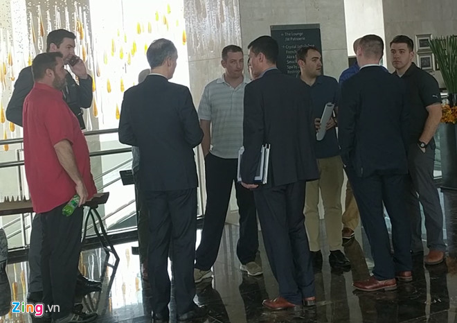 Một đoàn khoảng chục người từ phái đoàn Mỹ đã có mặt tại sảnh chính của khách JW Mariott ở Hà Nội vào trưa ngày 19/2. Họ có dáng người cao ráo, nói tiếng Anh, và đã gặp những người quản lý cấp cao của khách sạn tại sảnh chính trong ít phút và được dẫn xuống tầng dưới để tiếp tục xem xét.