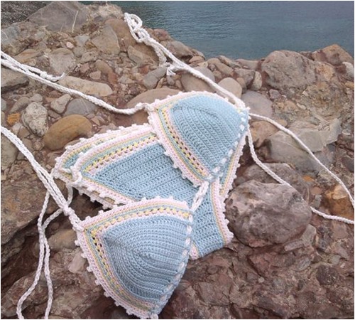 Áo tắm đan móc nghe có vẻ hơi "quê mùa" nhưng thực chất lại là kiểu đồ tắm khiến mọi cô nàng vẫn khoe được nét bốc lửa mà không sợ bị nói là khoe cơ thể quá đà.