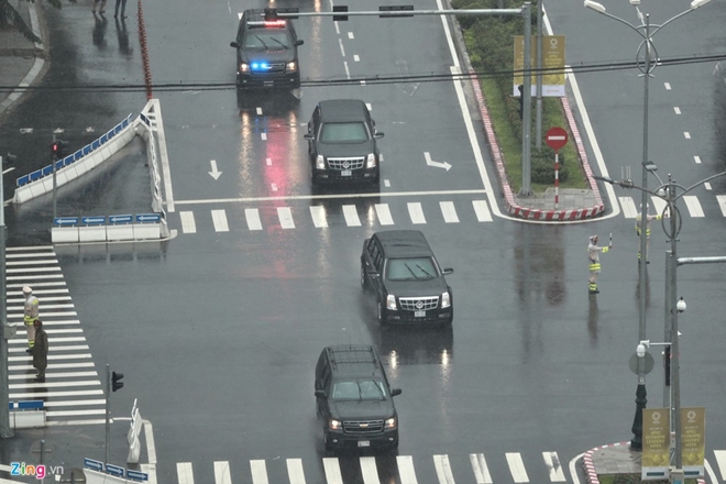 Bên cạnh hai chiếc Cadillac, đoàn xe được dẫn đầu bởi xe hoa tiêu và 2 xe chở đặc vụ Mỹ đi trước và đi sau xe của Tổng thống Trump. Ngồi trên hai chiếc xe mật vụ là những chuyên gia an ninh hàng đầu của Mỹ cùng những tay súng thiện xạ có nhiệm vụ bảo vệ Tổng thống ở tầm gần.