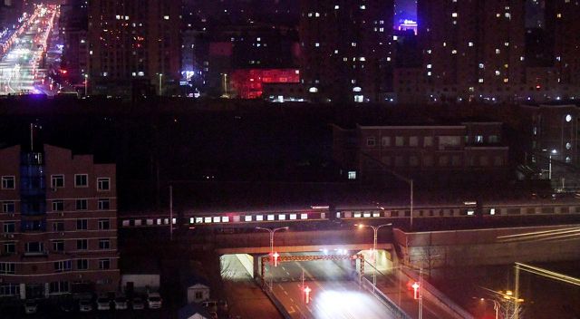 Đoàn tàu được cho là chở Chủ tịch Triều Tiên Kim Jong-un và phái đoàn qua thành phố biên giới của Trung Quốc, chuẩn bị đến Việt Nam. (Ảnh: Reuters)