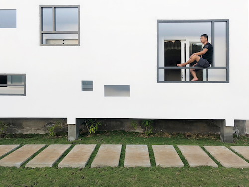 Cửa sổ nhà với nhiều hình khối khác nhau, gây ấn tượng thị giác mạnh. Đây cũng là nơi chủ nhà ngồi ngắm bình minh hay hoàng hôn trên mặt hồ.
