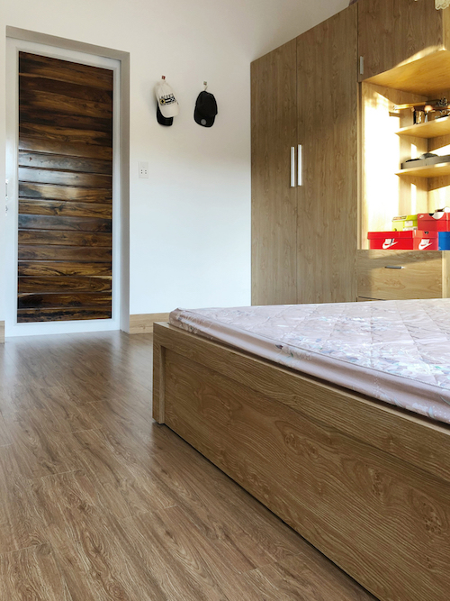 Phòng ngủ cũng như đa số các không gian khác sử dụng nhiều nội thất gỗ mang lại cảm giác ấm cúng.