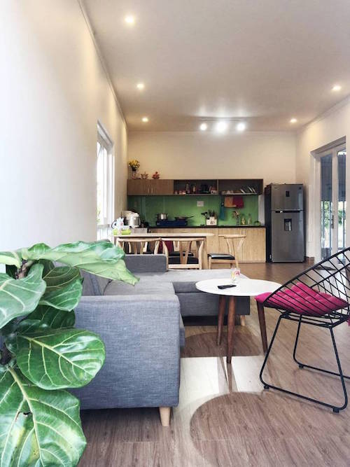 Ngôi nhà bên hồ xây một tầng, có diện tích mặt sàn 105 m2 nằm ven một thị xã nhỏ ở Đắk Lắk. Đây là nơi sinh sống của một chàng trai 8x độc thân cùng mẹ và em gái.
