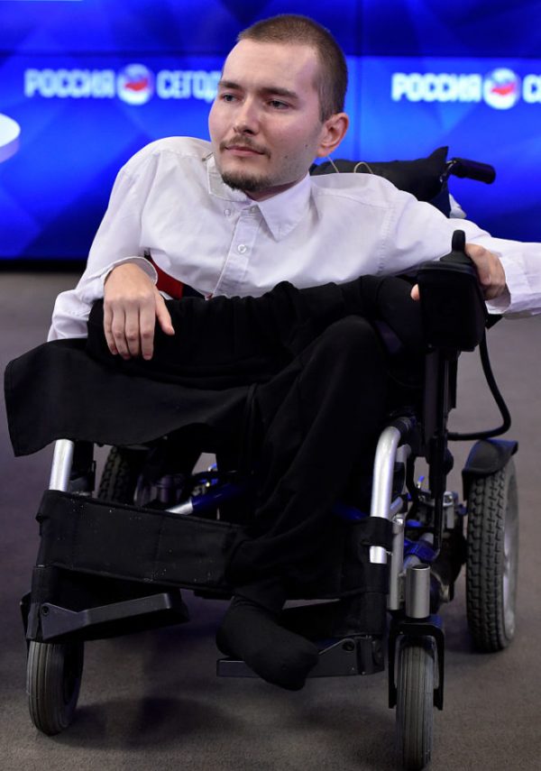 Valery Spiridonov, một người Nga bị bệnh teo cơ muốn làm tình nguyện viên, nhưng sau đó đã rút lui. (Ảnh: ©Getty Images | YURI KADOBNOV/AFP)