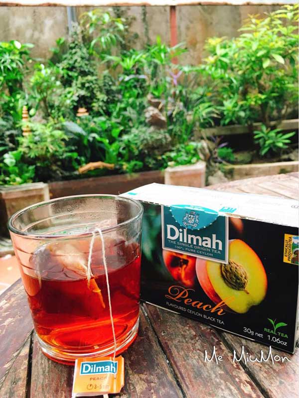 - Nhúng 2 gói trà Cozy đào vào nc sôi 3-5' cho trà phai hết (bạn có thể thay bằng Lipton, Dilmah hay loại khác tùy sở thích)