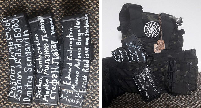 Nhiều cái tên xuất hiện trên vũ khí của nghi phạm. Ảnh: DM