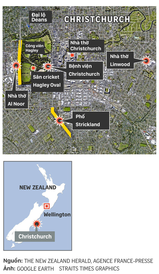 - Có ít nhất 40 người thiệt mạng và hơn 60 người khác bị thương trong các vụ xả súng ở 3 địa điểm tại Christchurch, New Zealand.