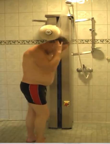 Một ông chú Phần Lan có một chiếc máy tắm tự động nó trông hao hao máy cân đo chiều cao chúng ta thường thấy., nhưng nhìn qua cứ tưởng đó là máy rửa xe, khi lại gần mới biết là cỗ máy tắm rửa tự động cũng hay, chỉ cần nhấn nút và lười vài phút.