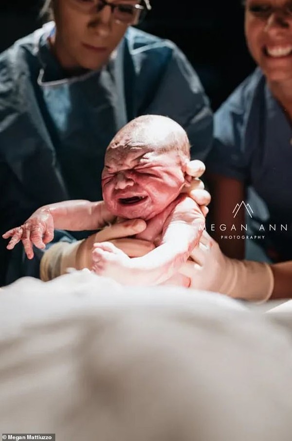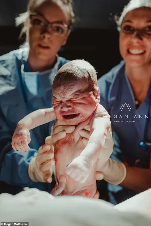 Megan nói việc này giúp cô quên đi những cơn đau khi cô tập trung vào việc lưu lại khoảnh khắc chào đời của con trai.