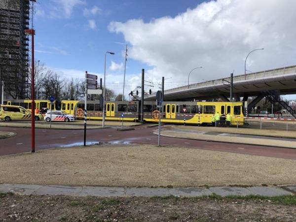 Hiện trường vụ xả súng trên tàu điện tại thành phố Utrecht ngày 18/3. Ảnh: Twitter/ Yelle tieleman.
