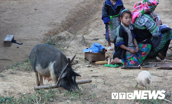 Đàn lợn của người Mông tự ủi đất kiếm ăn, hoặc may lắm thì được chủ ném cho củ sắn, bó ngô để nhai. Chúng sống nhờ cơm thừa, canh cặn.