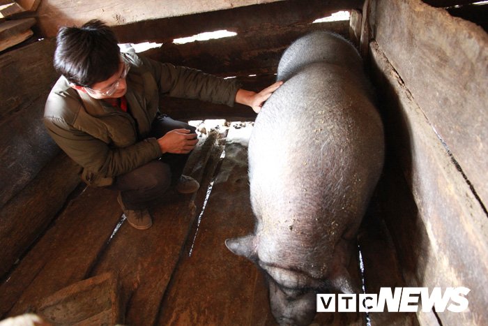 Anh cứ đóng gông vào cổ chúng, rồi thả loanh quanh ở nương nhà. Khi chúng được độ 2 năm tuổi, to lớn, đi lại kiếm ăn không hoạt bát nữa, thì nhốt vào dãy chuồng tạm bằng gỗ ở trước nhà. Hàng ngày, vợ con nấu sắn, ngô, hái rau rừng ném vào cho chúng ăn.